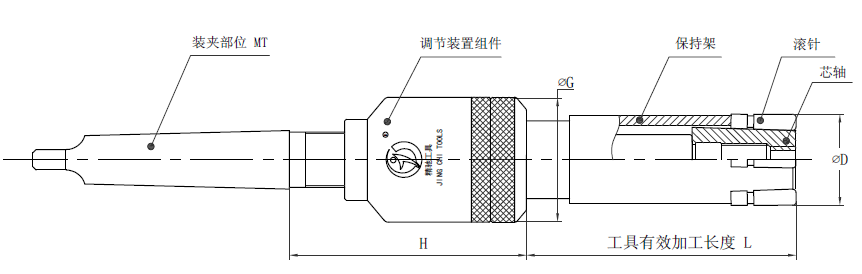 注:孔徑Φ26-68的滾壓刀有效加工長度從B檔開始柄部標配MT3,如需其他型號規(guī)格需定做。加工孔徑Φ40以上的滾壓刀,由于調(diào)節(jié)組件的外徑比加工孔徑小,可通過加長柄部尺寸的方法增加加工長度。